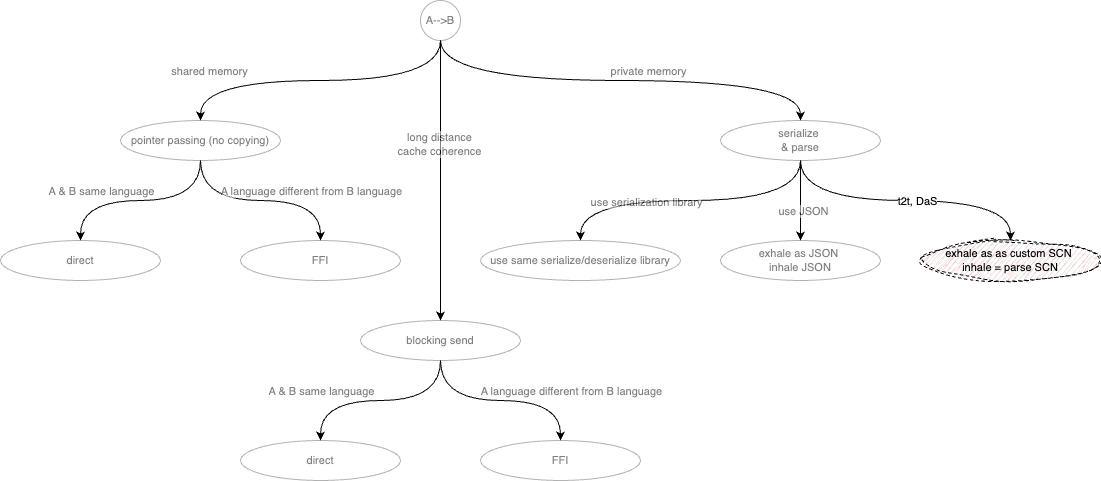 Given this attitude, the basic question decomposes into “how to convert structured data into something that can be transferred without assuming the use of shared memory and under-the-hood cache coherence?”.