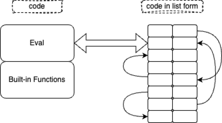 Where does this knowledge take us? I don’t know yet, but, I do note that Sector Lisp[1] is incredibly tiny. Also, the flexibility of lists make it a lot easier to generate code-as-lists. Generating code-as-array-elements is painful, since one needs to worry about insertion and deletion issues (C’s malloc() is an example of pain inflicted by array-think).