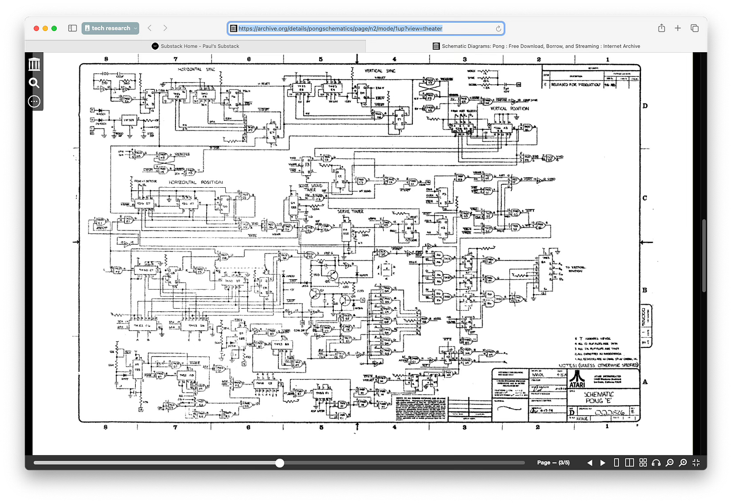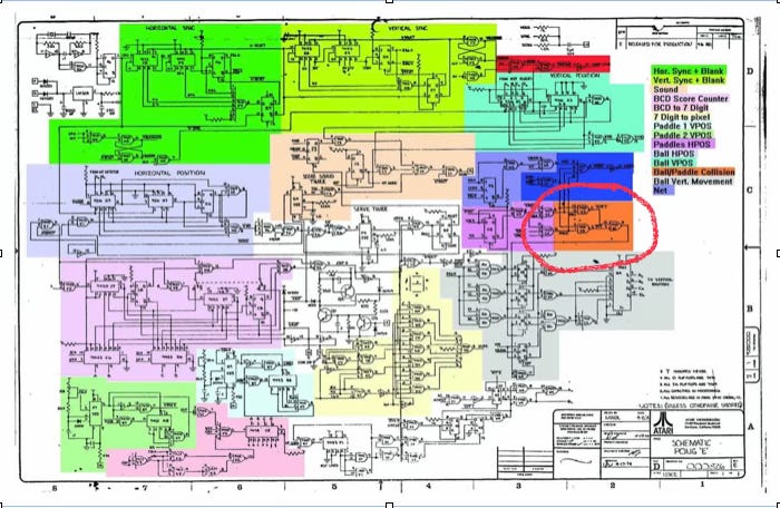 I’ve included the schematic for this game below, from the website https://archive.org/details/pongschematics/mode/1up?view=theater.