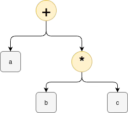 This AST can be reduced to Gutenberg typesetting notation as (+ a (* b c))