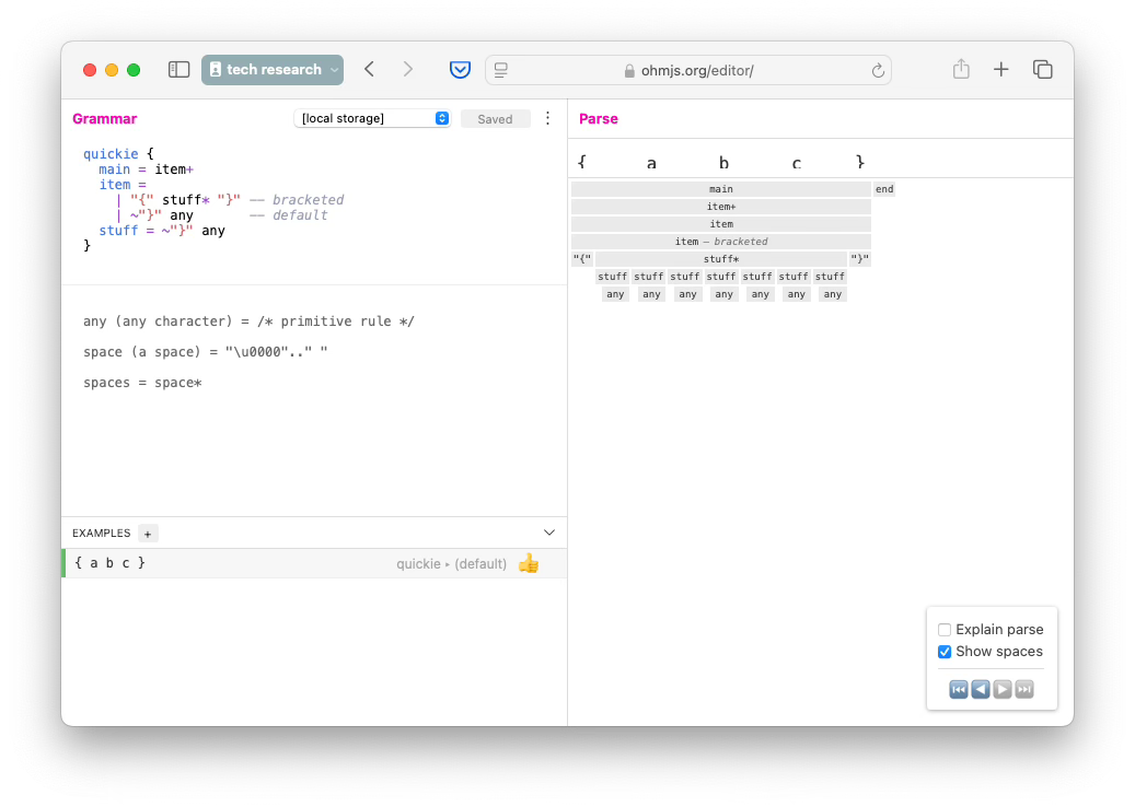 PEG, though, does make it easy. OhmJS is an improvement on PEG. OhmJS makes it even more easy to parse this kind of stuff.