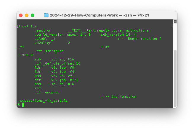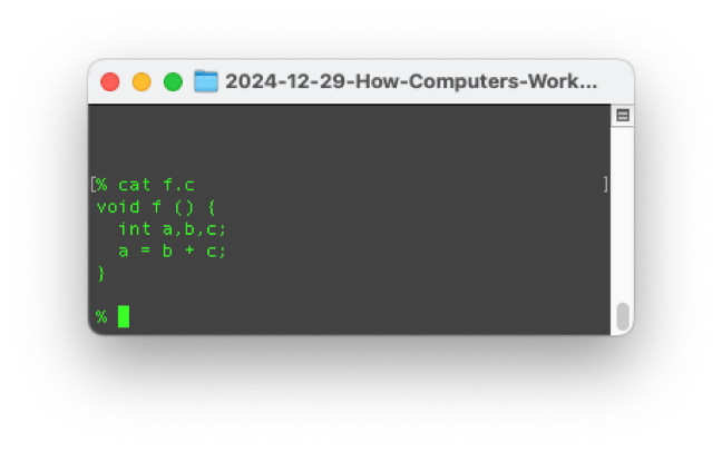 Later, we tagged each interesting combination of switch settings with 3-letter “words”, called “mnemonics” and made a transpiler called an “assembler” to map the 3-letter words into sets of bits.